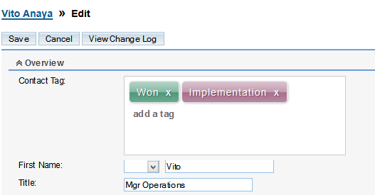 In addition to visually identifying tags, you can search for any tag by adding the field to your search forms. When searching simply wrap your search terms with the wild card. A search for "Won" would be entered as "%Won%". All records with that tag will then return.