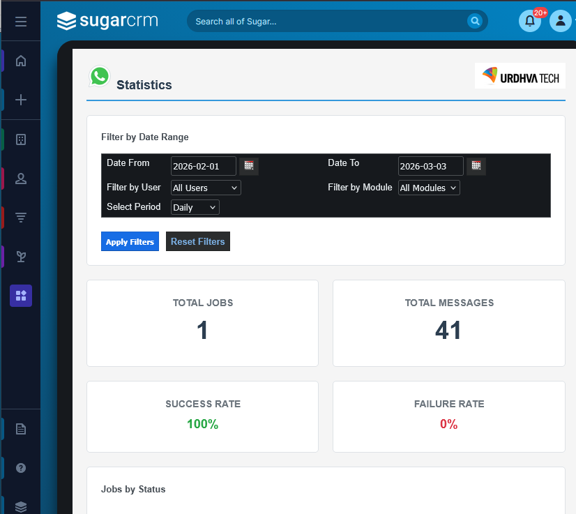 WhatsApp Integration for SugarCRM enables businesses to communicate with customers directly from their CRM using the official WhatsApp Cloud API. Manage real-time conversations, automate customer workflows, send bulk messages, and track engagement—all from a single, centralized platform. Every interaction is stored in SugarCRM, giving your teams full visibility and context for sales, support, and marketing.
