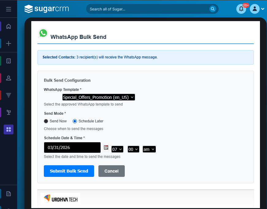 WhatsApp Integration for SugarCRM